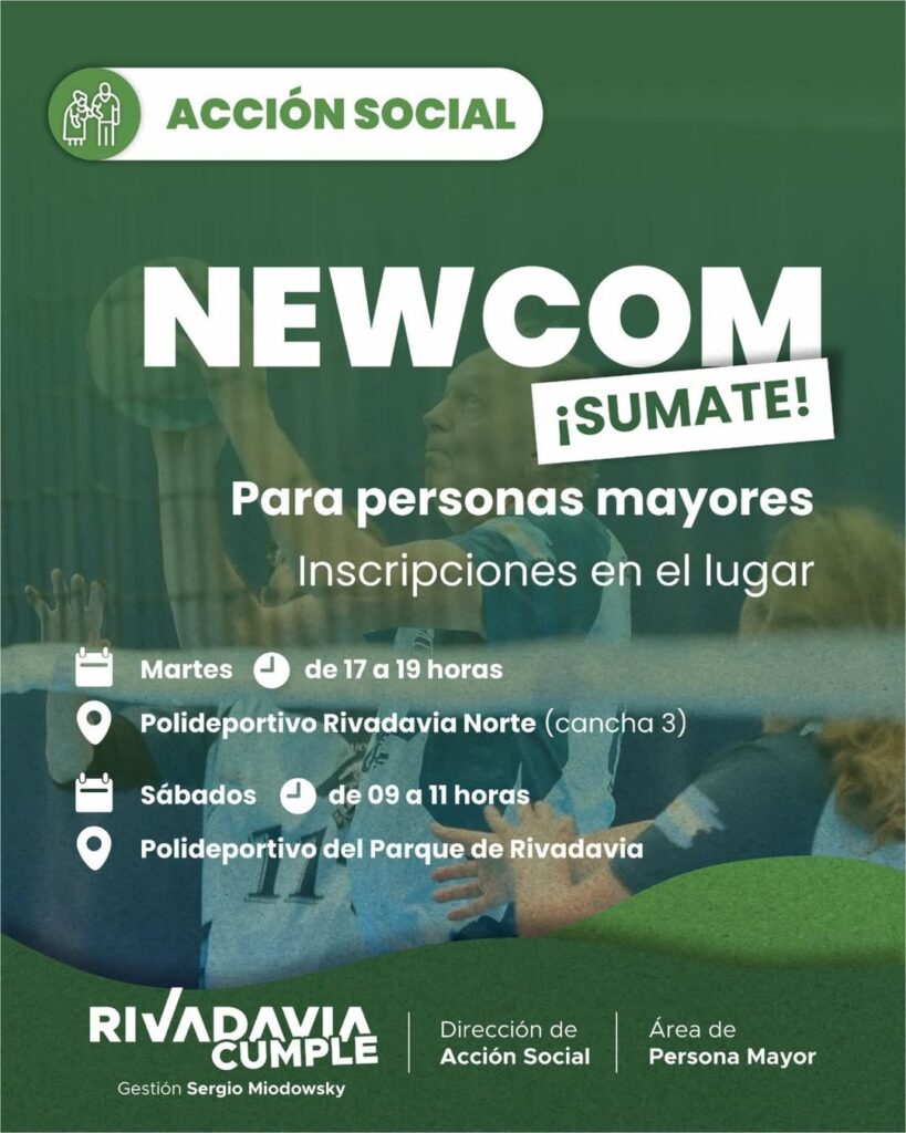 El Newcom sigue sumando participantes en Rivadavia, con espacios pensados para que las personas mayores se mantengan activas, compartan y disfruten del deporte.